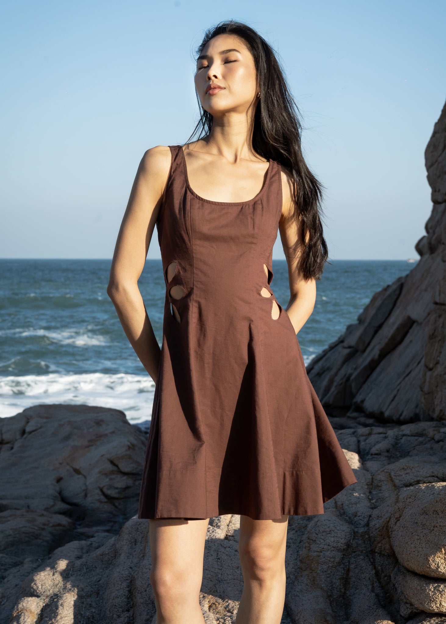 The Iris Mini Dress balances structure and ease, offering a flattering fit that feels as good as it looks. Its breathable cotton-linen fabric provides lightness and comfort, while the corset-inspired shape subtly defines the waist and enhances the silhouette. The clean neckline and sculptural cut-outs add a contemporary touch without overpowering the design.